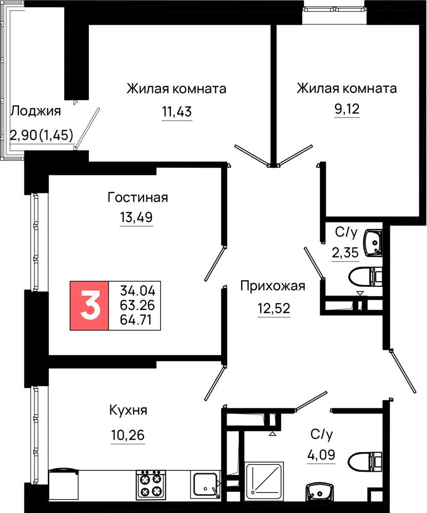 Продажа трехкомнатных квартир в новостройках в Семикаракорске